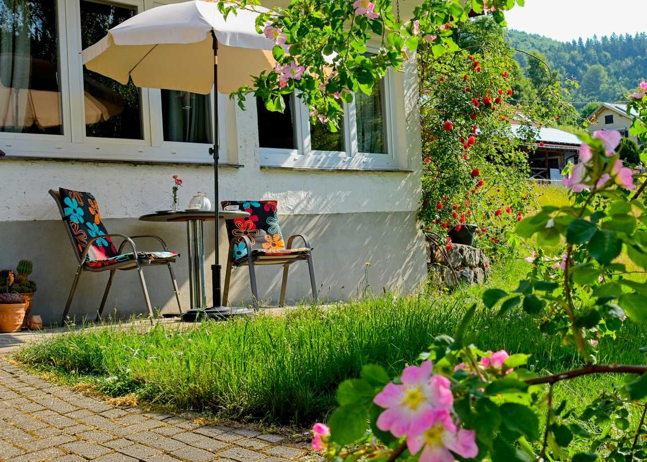 Vor der Wohnung lädt eine kleine Wiese dazu ein, draußen zu frühstücken, die Sonne zu genießen oder einfach die Stille des Hochschwarzwalds auf dich wirken zu lassen. Hier findest du zu jeder Tageszeit ein gemütliches Plätzchen im Freien. Auch deinem Hund wird es hier sicher gut gefallen.