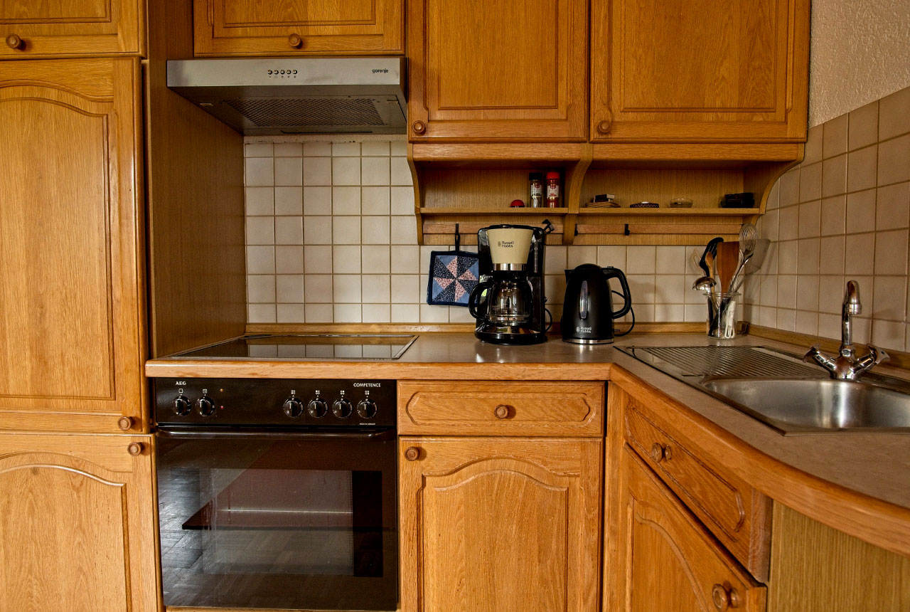 In der rund 20 qm großen Wohnküche, die mit allem ausgestattet ist, was du für deinen Urlaub brauchst, kannst du es dir bei jedem Wetter gemütlich machen. Du kannst lesen, fernsehen oder einfach entspannen. Die Couch lässt sich zu einem Gästebett umbauen – so kann bei Bedarf auch eine dritte Person oder ein Kind mitreisen.